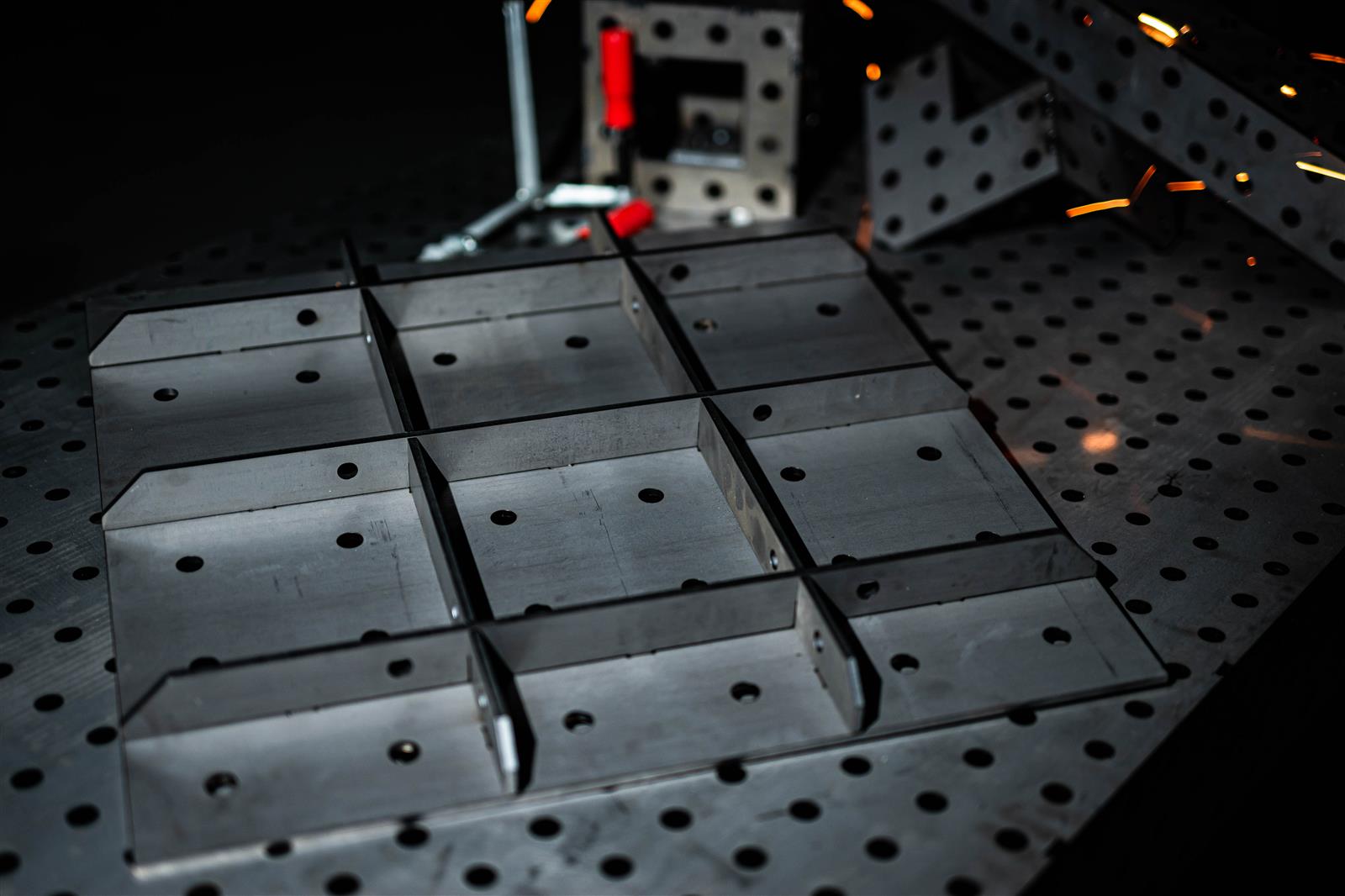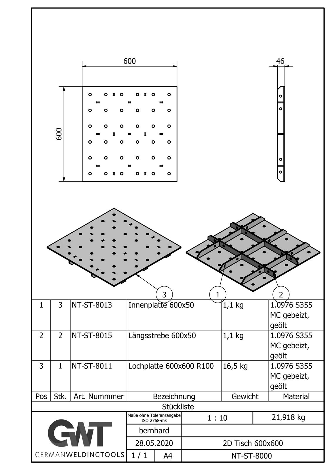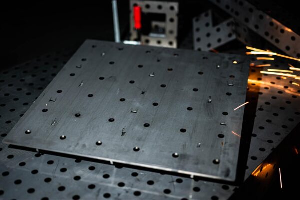 Der 2D Tisch aus S355 lässt sich leicht auf Werkbanken aufsetzen und lässt sich mit seinem relativ geringen Gewicht leicht transportieren. Das Lochraster D16 mit 100×100 mm auf der 2D Schweißplatte ermöglicht vielfältiges Arbeiten mit Metallobjekten. Mit dem Lochraster auf der Tischoberfläche kannst du schnell die zu bearbeitenden Objekte maß- und winkelgenau positionieren und fixieren. Bitte beachte, dass bei der Auswahl von Zubehör dies auf das 100×100 Lochraster des Tisches passen muss.