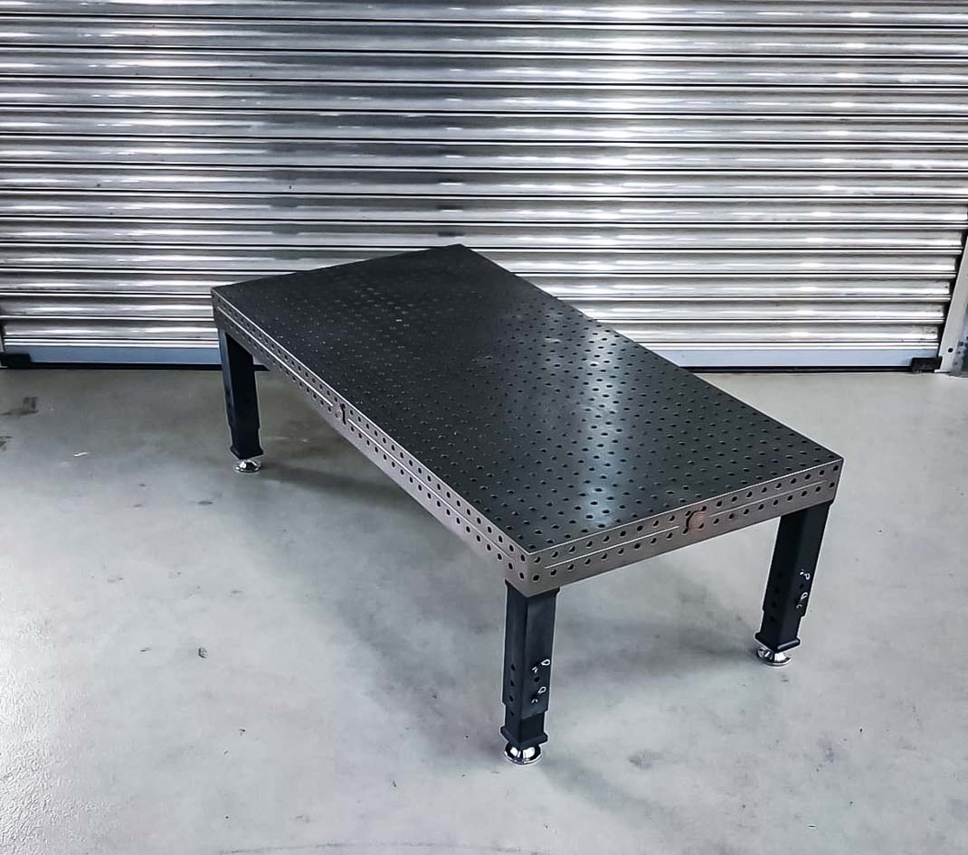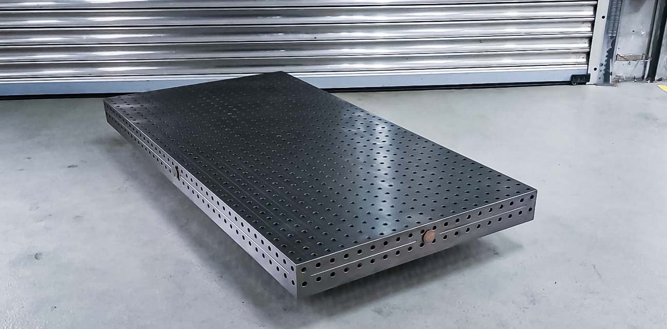 - 1x 3D Schweißtischplatte D22 (Stahl S355J2 plasmanitriert) 2000x1000x150 – Lochraster 50×50