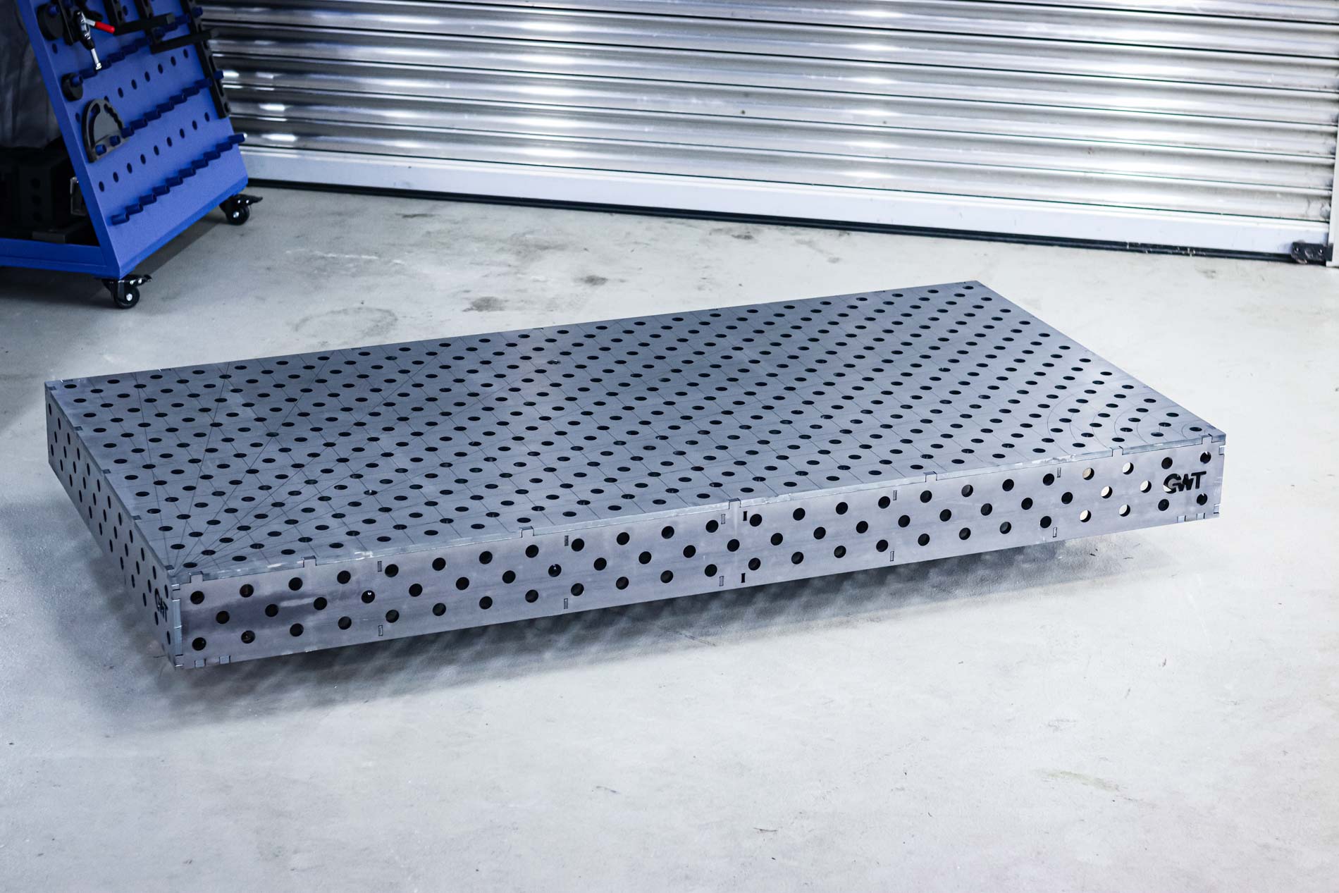 Mit den fertig verschweißten System 28 Lochtischen könnt ihr direkt loslegen! Einfach aufzustellen durch geschraubte Tischbeine und stabil genug durch Seitenwangen und Querverstrebungen.