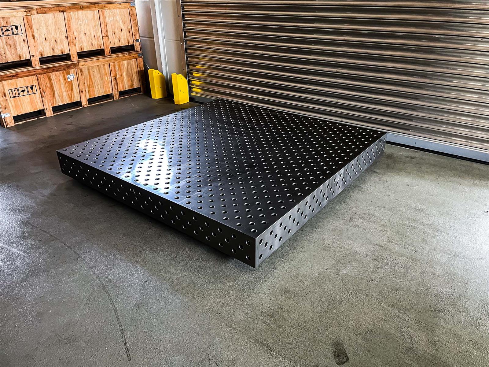 Dein ulitmativer Heavy Duty 3D Schweißtisch mit Lochsystem D28 . Gefertigt aus Stahl S355JR. In den Abmaßen LxBxH: 2000x2000x200 . Lochraster 100x100mm mit Gravurlinien.