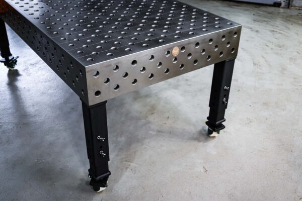 Dein ulitmativer Heavy Duty 3D Schweißtisch mit Lochsystem D28 – Werkzeugstahl 800M plasmanitriert – 2000x2000x200 . Lochraster 100x100mm mit Loch im Diagonalraster auf den Gravurlinien.