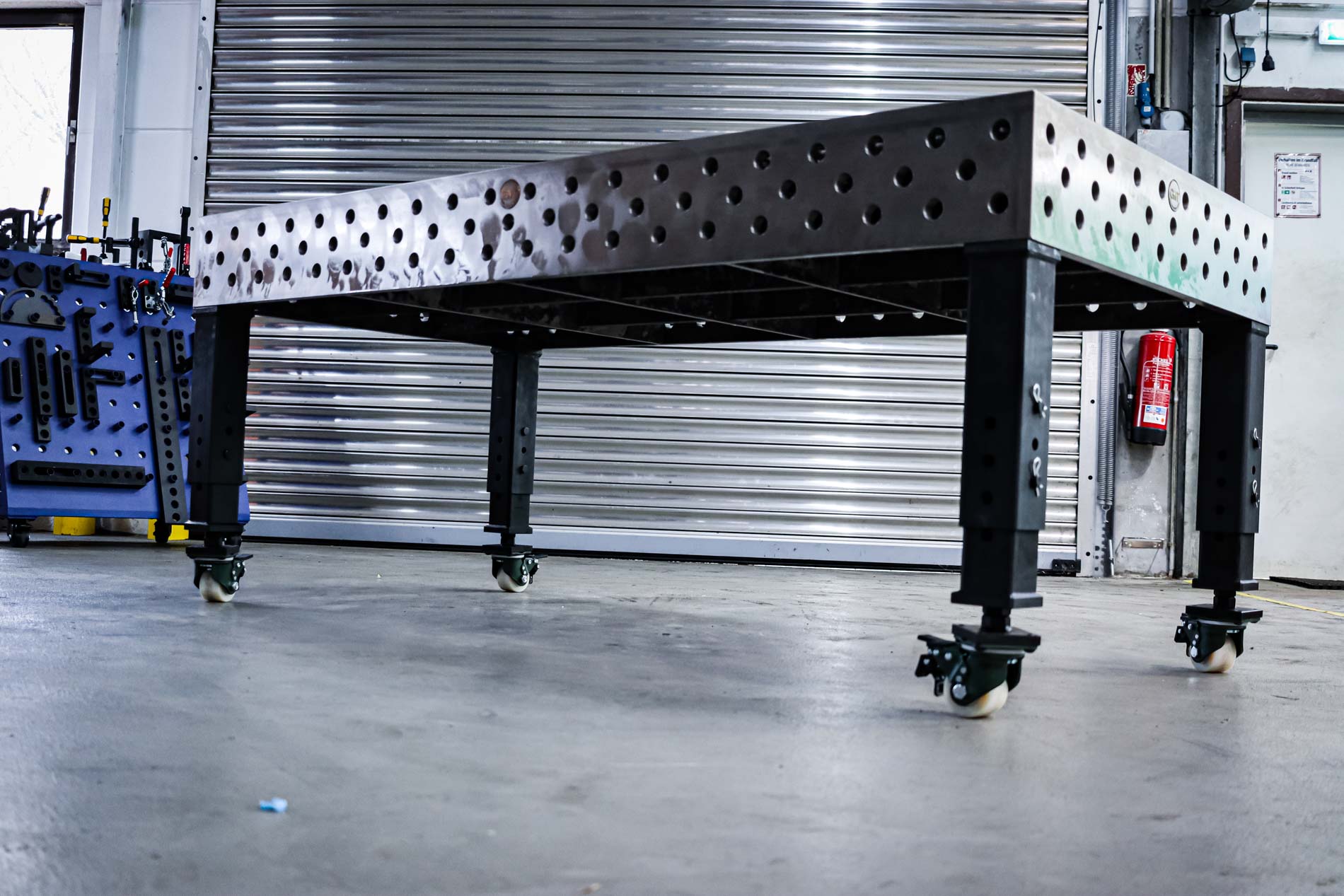 Dein ulitmativer Heavy Duty 3D Schweißtisch mit Lochsystem D28 . Gefertigt aus Werkzeugstahl 800M. In den Abmaßen LxBxH: 3000x1500x200 . Lochraster 100x100mm mit Gravurlinien. Plasmanitiert