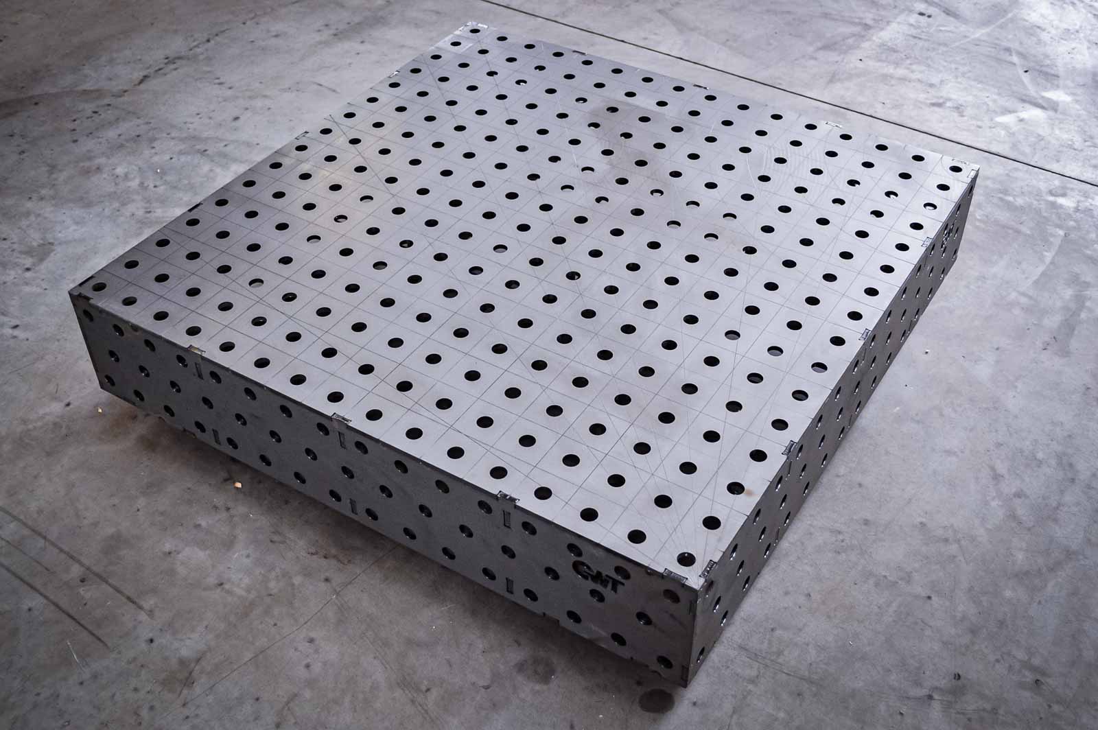 Die GWT Bausatzplatten von 200x200x50 bis 3800x1400x200 sind das nonplus Ultra der DIY Schweißtische. Der Schweißtisch zum selbst zusammenbauen ist aus S355MC gefertigt und ist damit äußerst robust. Das Lochraster des Schweißtischs mit 50×50 mm bietet dir zahlreiche Möglichkeiten, Spannmittel zu positionieren und zu fixieren und wiederholgenau zu arbeiten.