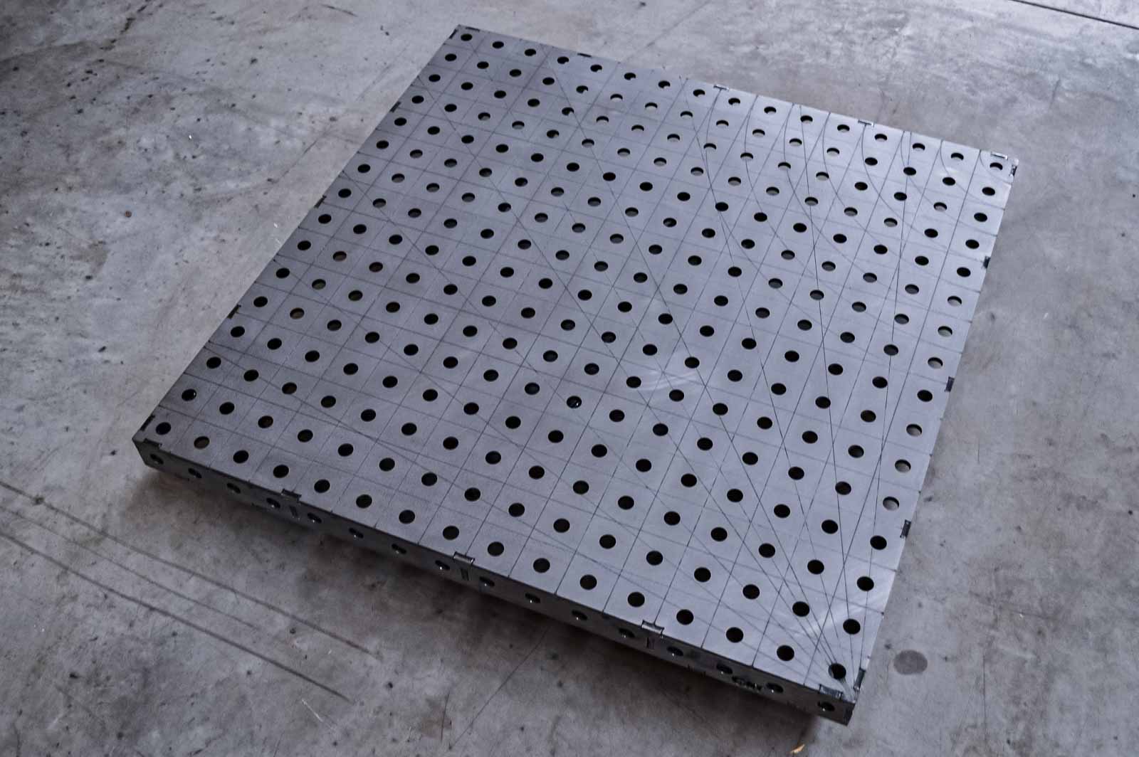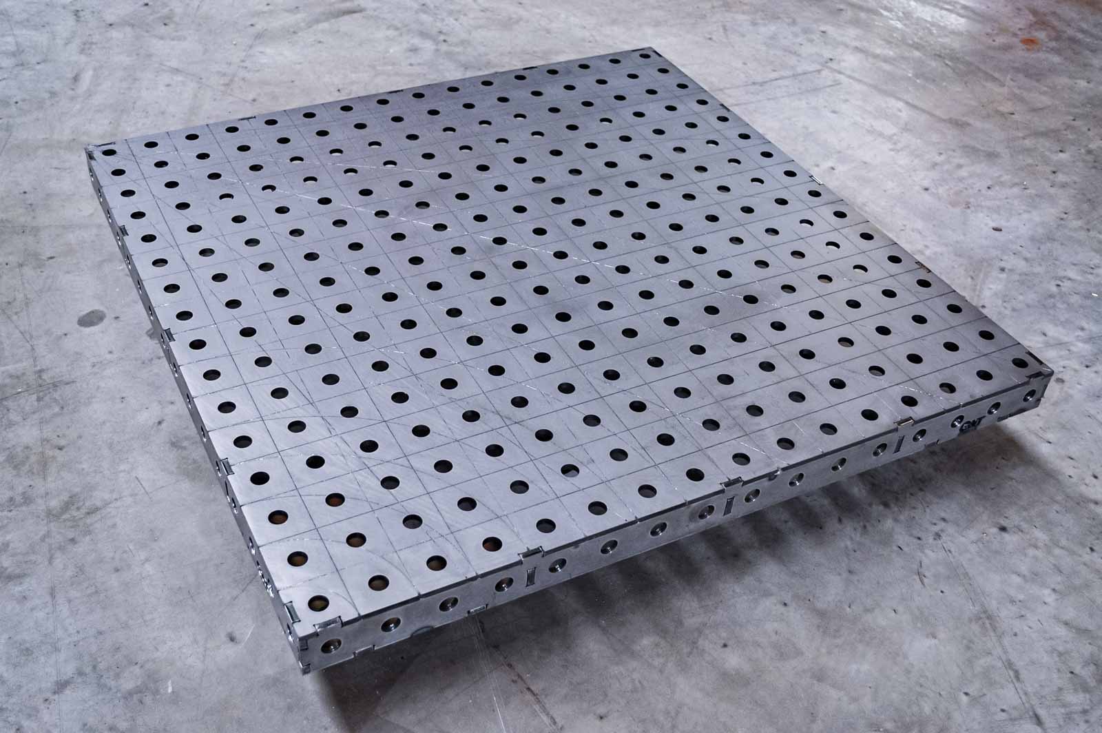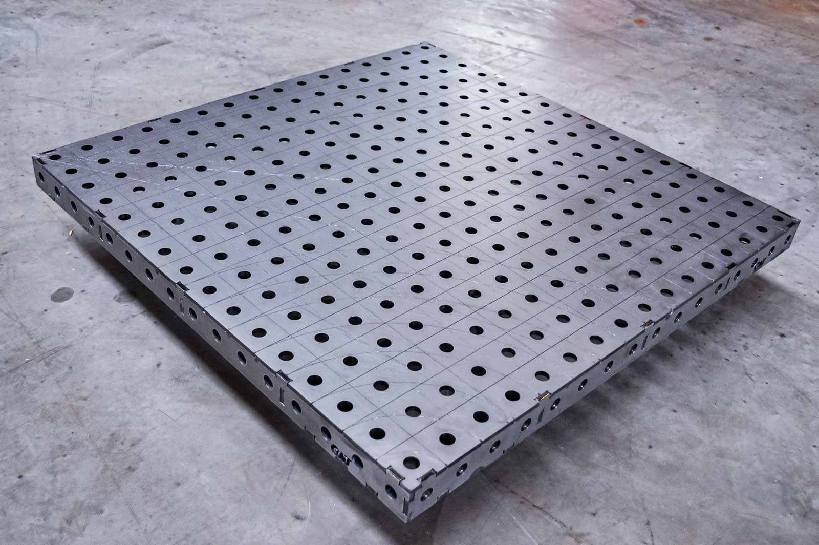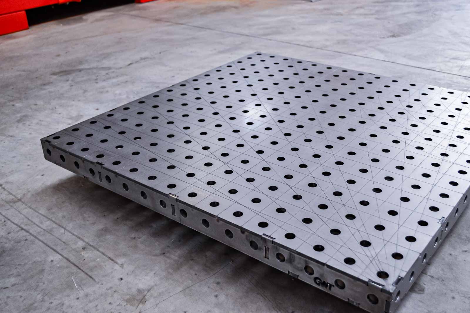 Die GWT Bausatzplatten von 200x200x50 bis 3800x1400x200 sind das nonplus Ultra der DIY Schweißtische. Der Schweißtisch zum selbst zusammenbauen ist aus S355MC gefertigt und ist damit äußerst robust. Das Lochraster des Schweißtischs mit 50×50 mm bietet dir zahlreiche Möglichkeiten, Spannmittel zu positionieren und zu fixieren und wiederholgenau zu arbeiten.