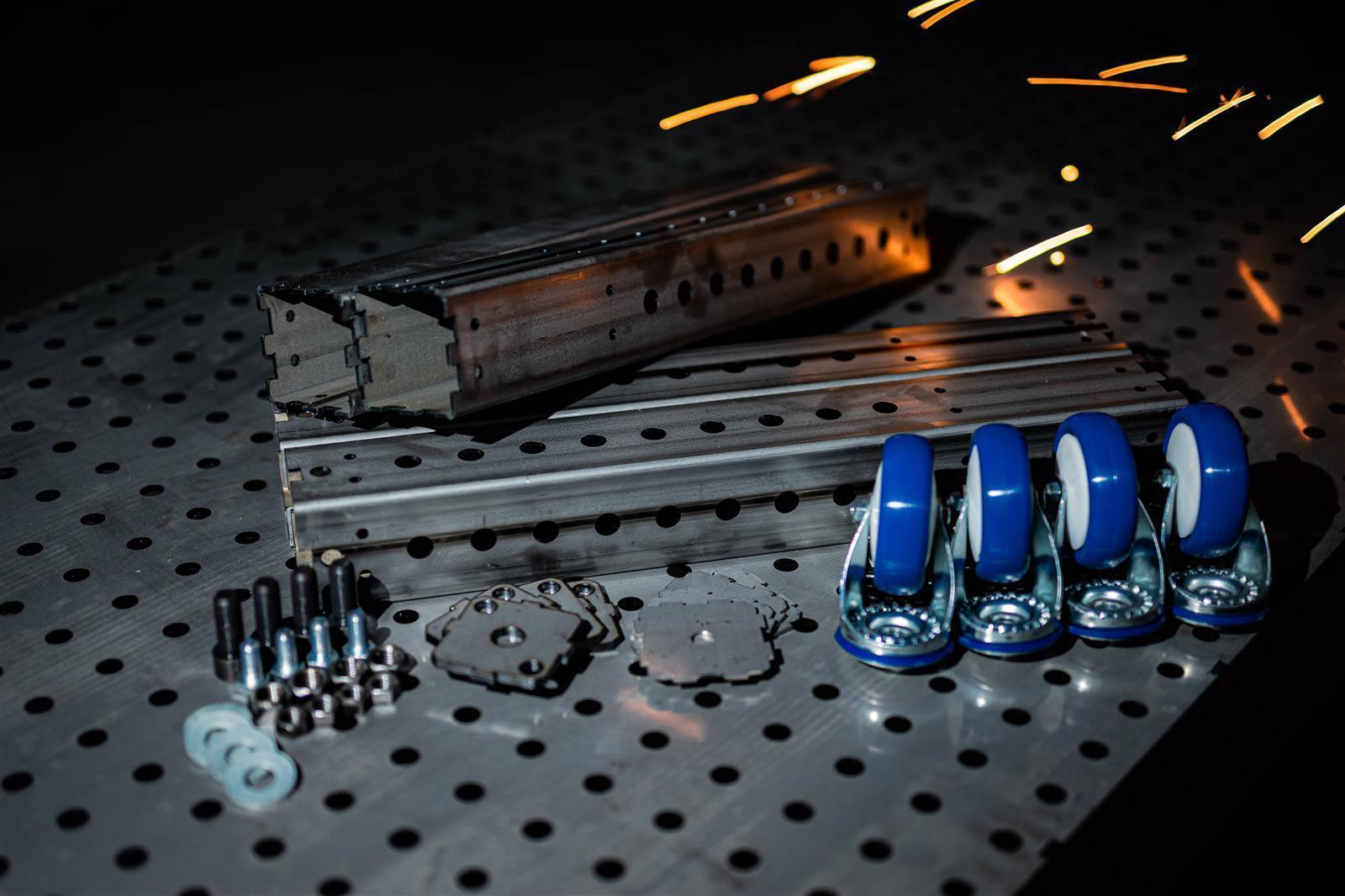 4 Stück Tischbeine aus 80x80x3 Quadratrohr. Innenliegende Bohrungen ermöglichen das verstauen von Spannzwingen und Zubehör. Waagrecht positionierte Bohrungen geben euch die Möglichkeit Zwischenböden/Fächer einzuschrauben. Die Beine sind beidseitig mit Gewinde ausgestattet, oben Ma16 unten M12 und somit für Rollen oder Maschinenfüße geeignet.