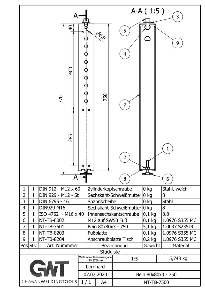 Kategorien: Schweißtischzubehör, Schweißtischbeine, D16-6 - Schweißtischbeine