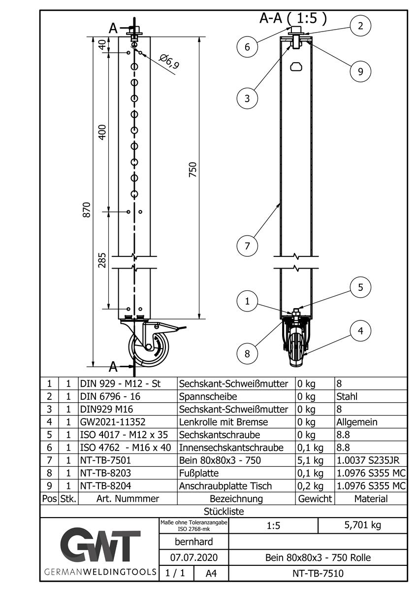Kategorien: Schweißtischzubehör, Schweißtischbeine, D16-6 - Schweißtischbeine