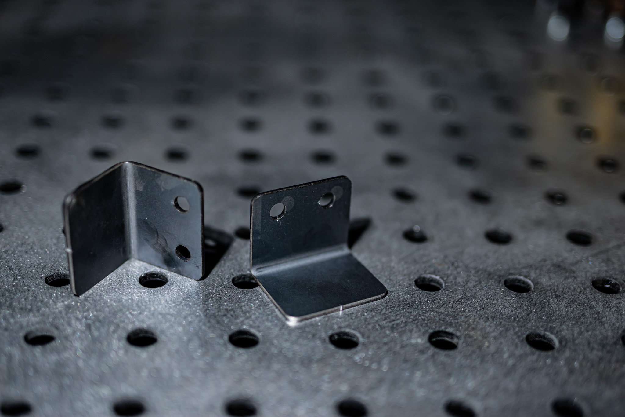 Schraube die Winkel an dein Tischbein und schiebe eine Platte oder Schublade unter deinen Tisch – Bewahre Material oder Anschlagmittel auf, oder Schütze das Schweißgerät unter deinem Lochtisch vor Funken und Staub.