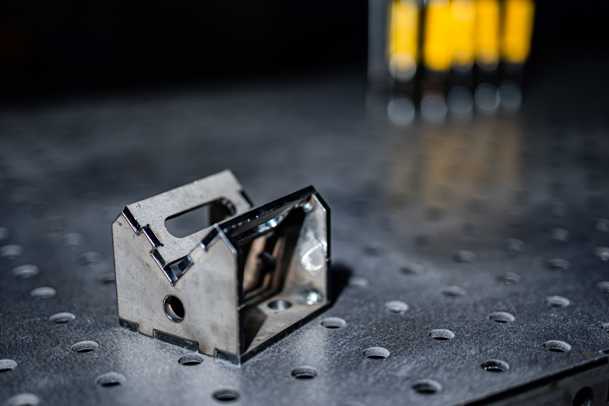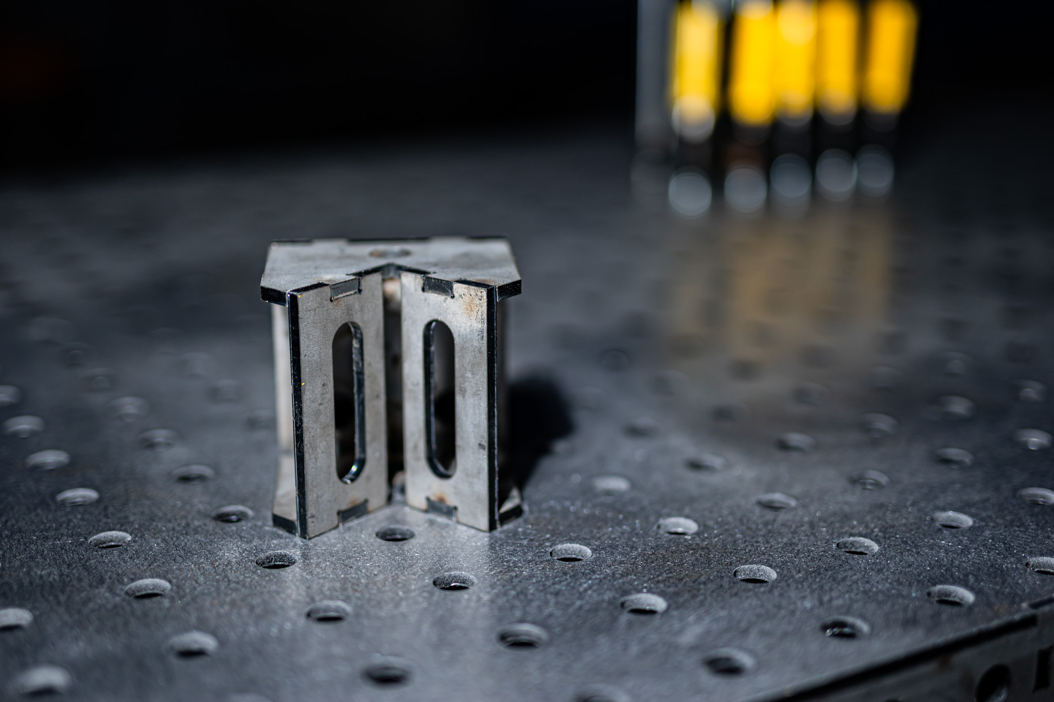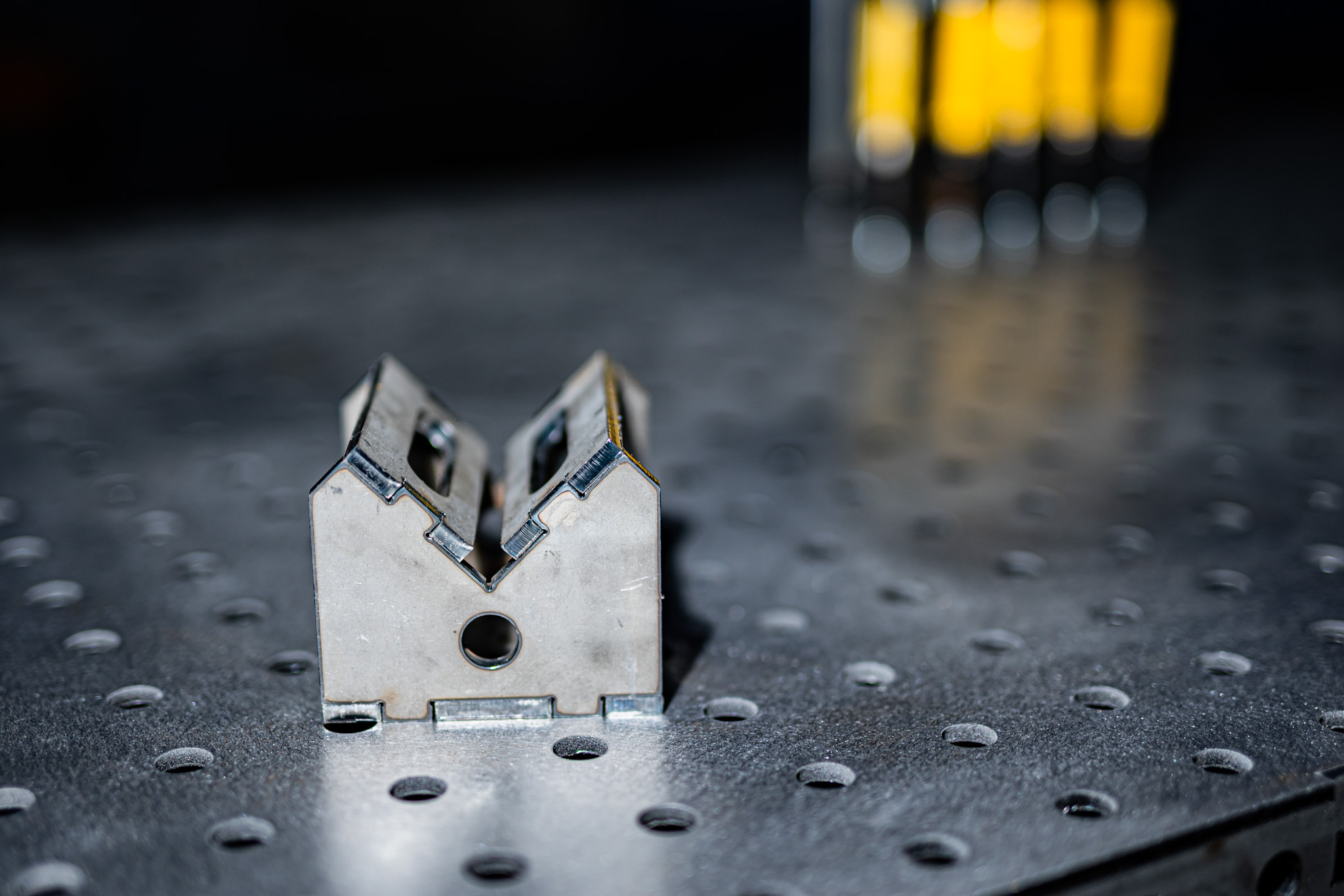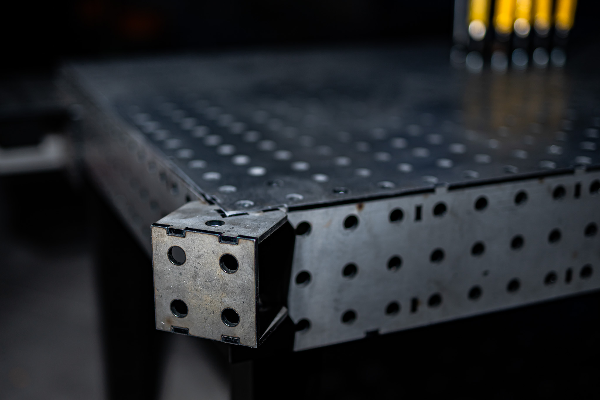 Setze deine Spannblöcke genau auf die Ecke deines Schweißtisches im 45° Winkel. Erweitere den Schweißtisch für große Konstruktionen oder arbeite neben dem Tisch um Dein Bauteil drum herum.