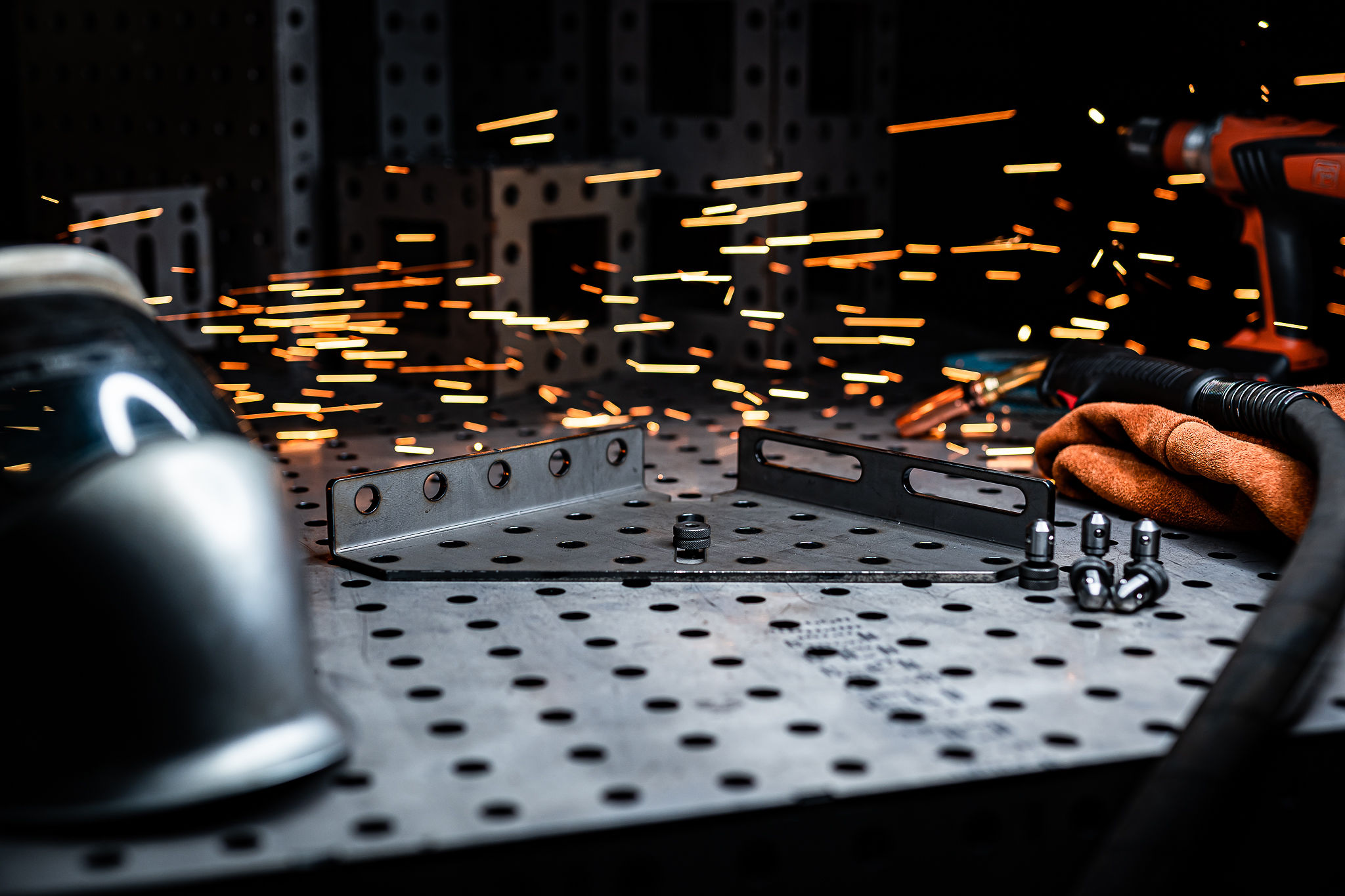 Der Kantwinkel lässt sich vielfältig einsetzen: Ausgestattet mit einem einfachen Design, schafft der Kantwinkel doch Großes. Hiermit kannst Du beispielsweise innen und außen Werkstücke spannen. Wenn Du mehrere Kantwinkel benutzt um einen Rahmen zu bauen kannst Du die Diagonalen mit der Anlagefläche messen, um die Rechtwinkligkeit zu prüfen. Dabei hat der Kantwinkel eine Winkelgenauigkeit von ± 0,5°. Bei der Schenkellänge beträgt die Toleranz ± 0,2 mm. Ebenso wie die Schweißtische besitzt dieses Produkt ein Lochraster 50 x 50 mm mit einer Bohrung von Ø16 mm. Der Kantwinkel ist nicht entgratet.