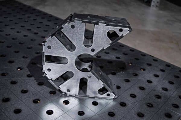 Um das Oktagonspannelement herum lassen sich Werkstücke einfach spannen und somit positionieren. Besonders geeignet ist es für das Fügen von Profilen, Rohren und Gehrungen an Innen- und Außenkanten. Darüber hinaus ist es auch für Standard-Schraubzwingen nutzbar. Durch die Aufteilung als 8-Eck ergeben sich Flächen im 45°, 90°, 135° und 180° Winkel an denen Werkstücke ausgerichtet werden können.
