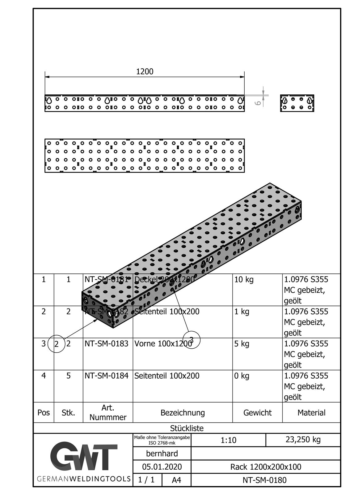 Lieferumfang enthält ein Bausatz-Set D16-6 Rack 1200x200x100.