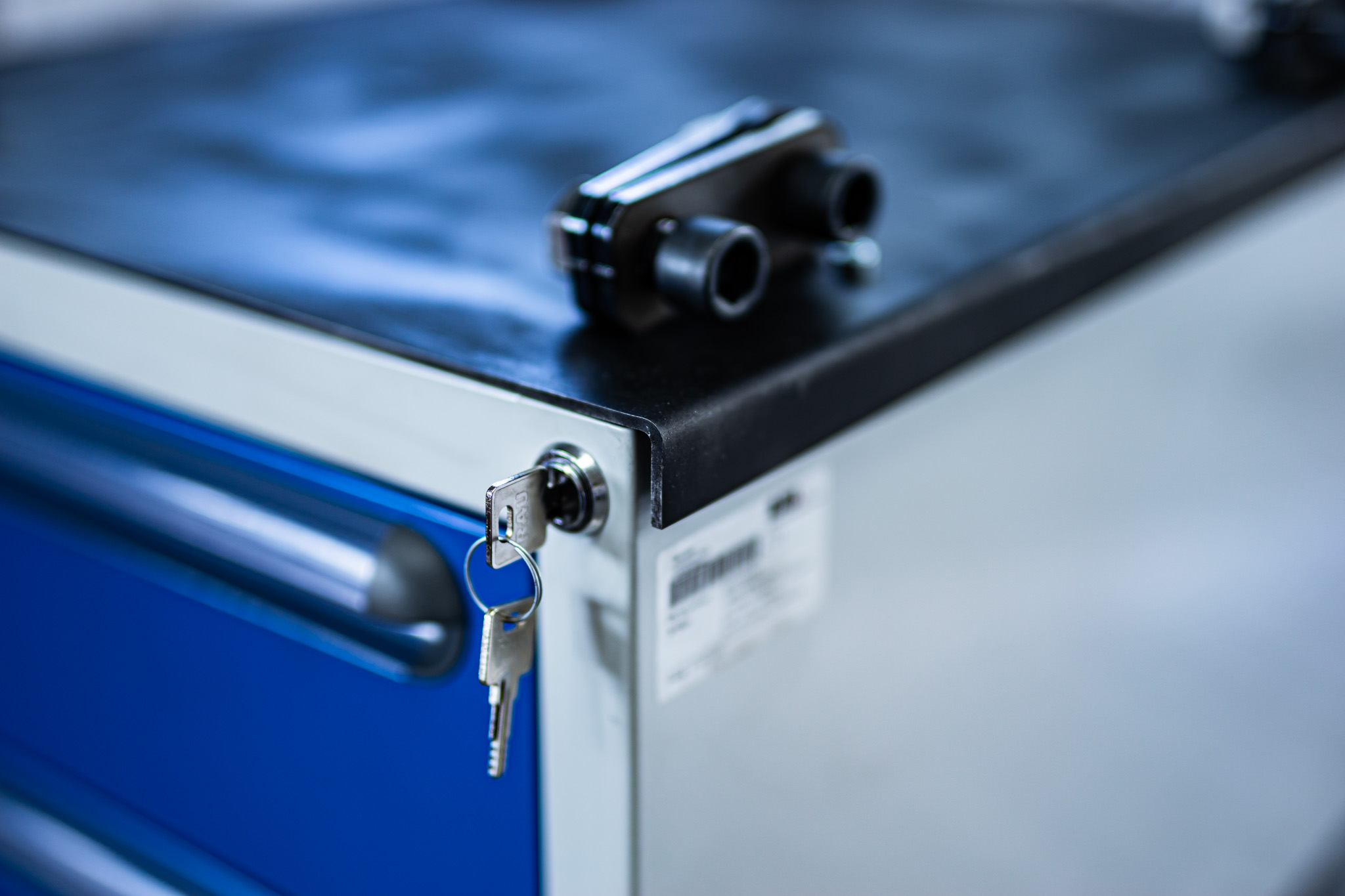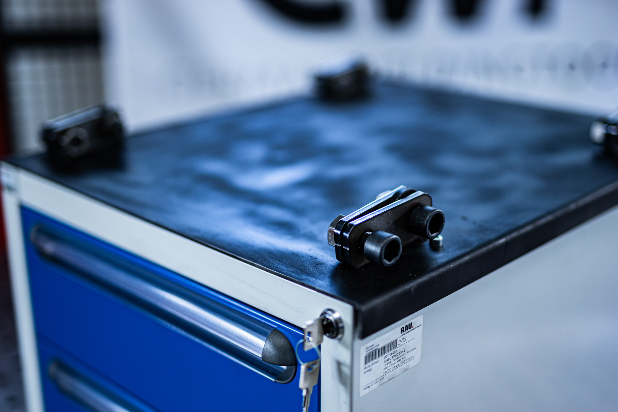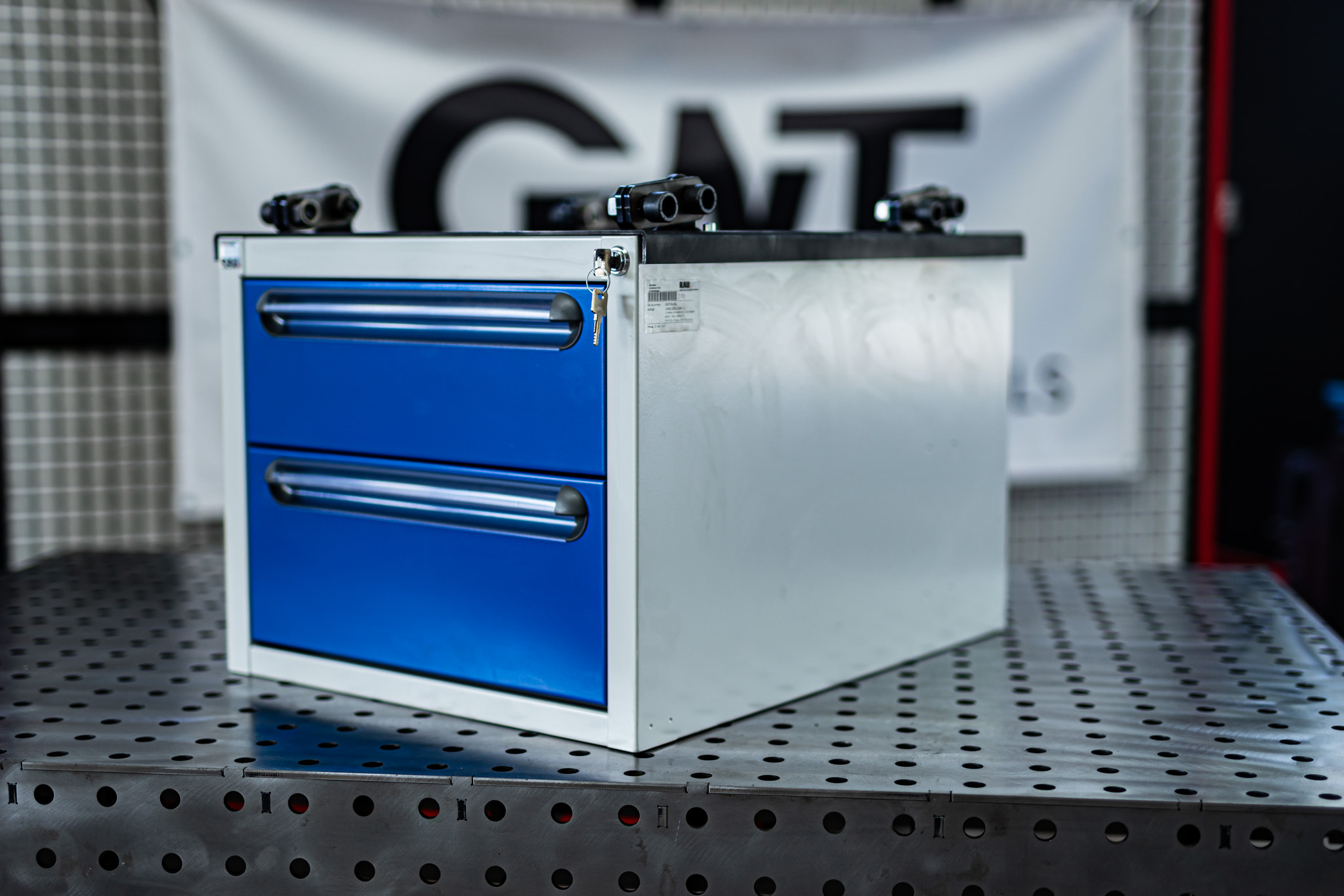 Original RAU Werkzeugschrank / Schubladen Ausführung mit GWT Aufnahmeblech als Bausatz. Passend unter die 6mm Bausatztische.