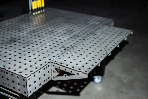 Wenn Du Dir mehr Arbeitsfläche wünschst, kannst Du Deinen Schweißtisch mit den praktischen Tischverlängerungen aufpeppen. Der modulare Bausatz besitzt genau wie der Schweißtisch ein Lochraster, weswegen du auch auf der verlängerten Seite des Tisches mühelos Gegenstände fixieren kannst. Als Spannwinkel lässt sich die Tischverlängerung auch nutzen.