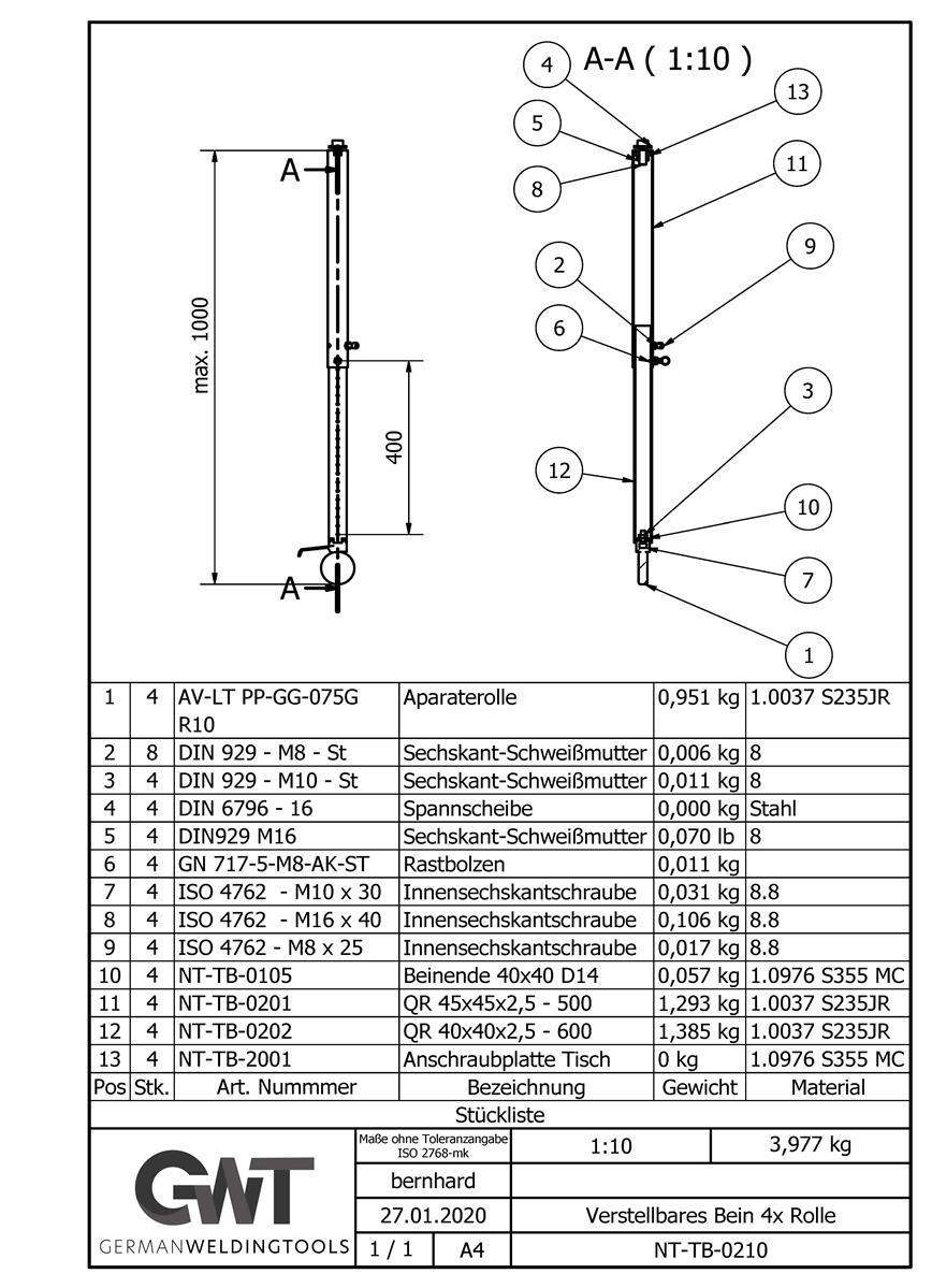Kategorien: D16-6 - Schweißtischbeine, Schweißtischbeine, Schweißtischzubehör