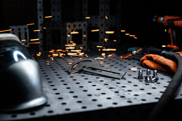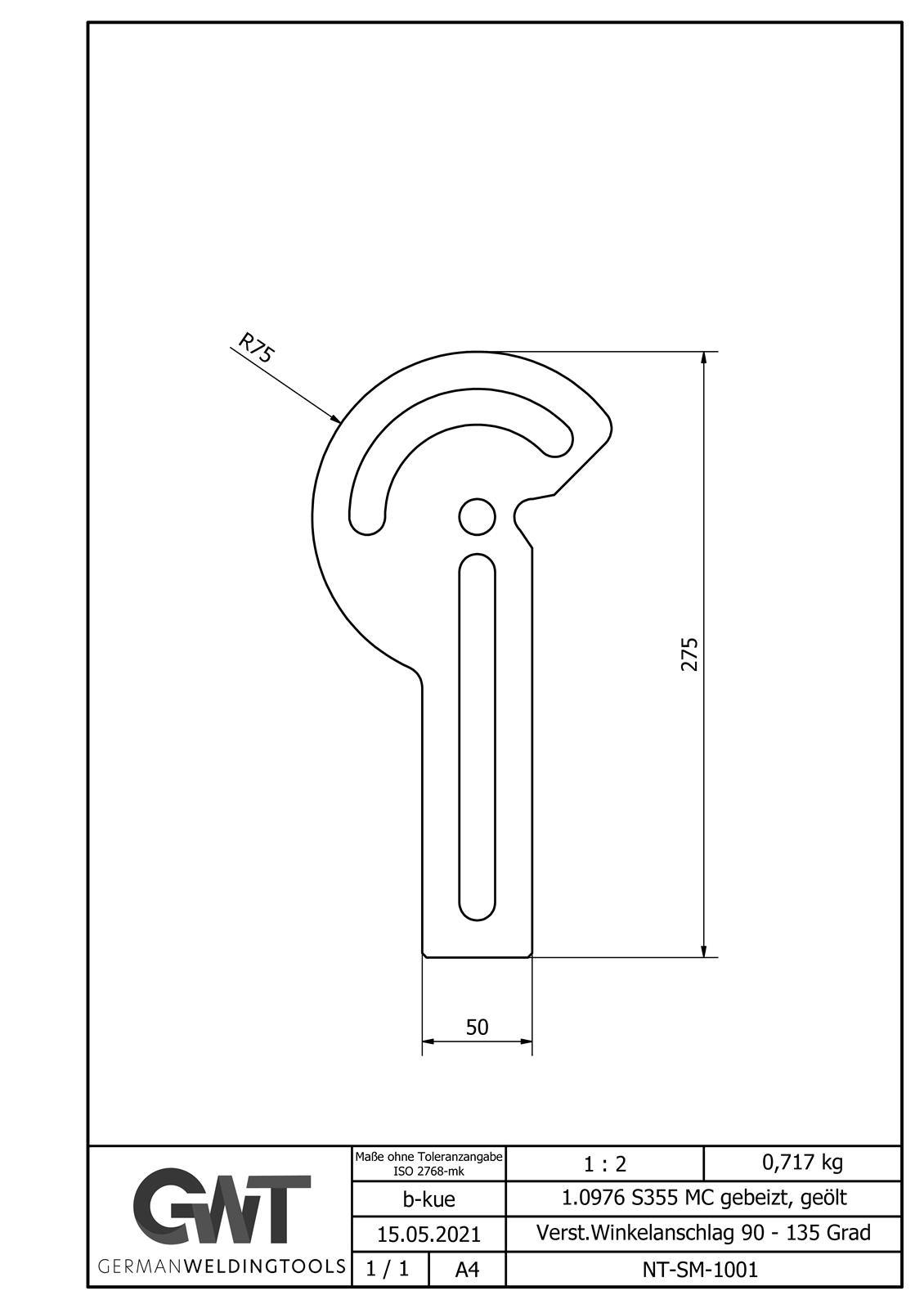 Die Winkellehre fixierst Du mit dem Loch in der Mitte auf Deinem Schweißtisch. Dann stellst Du mit einem weiteren Loch das zum Lochraster Deines Tisches den gewünschten Winkel ein. Passt alles? – dann legst Du dein Werkstück an. Mit den üblichen Abstufungen sind die Fixierpunkte aufgeteilt. Mit den per Laser markierten Werten ermöglicht Dir das Tool, sauber und zuverlässig zu arbeiten.