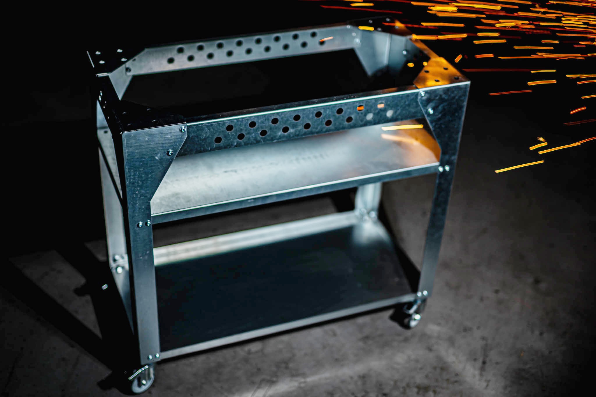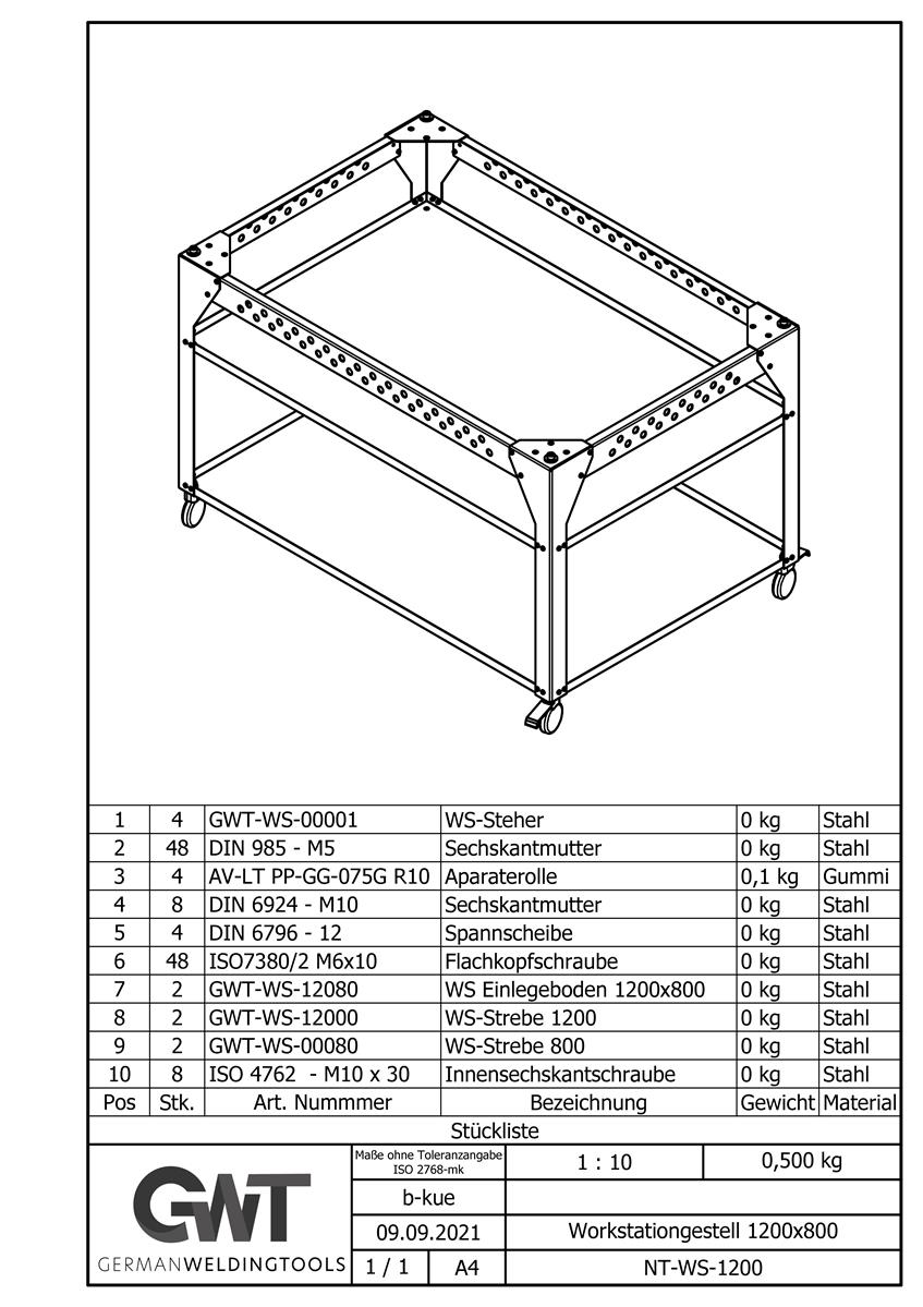 Das Workstationgestell passt unter unsere 1200x800x150/100 und 50mm hohen Tische egal ob 6, 12 oder 15mm Bausatz.