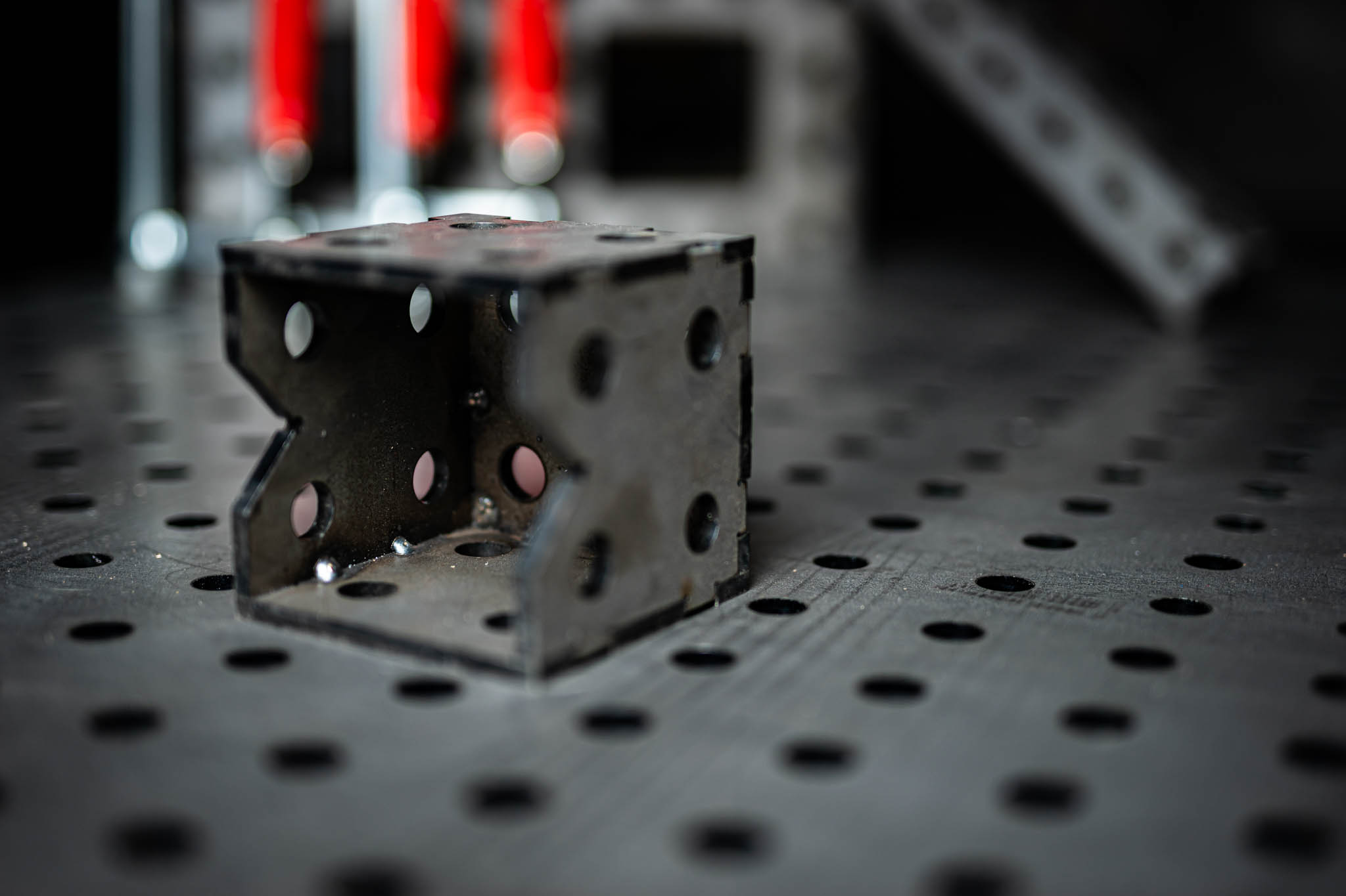 Der Würfel eignet sich ideal zur Verarbeitung von Profilbauteilen, auf der Rückseite befindet sich eine Einkerbung in die du zum Beispiel ein Rohr einlegen kannst. Wenn Du dein Objekt positionieren willst, kannst Du ihn als „Unterbau” verwenden und dort zum Beispiel die Rohrmatrize oder einen Spannwinkel befestigen. Der Würfel gibt so Hilfestellung beim sauberen befestigen und bearbeiten von Profilen.