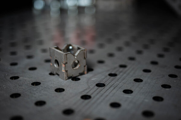 Der Würfel eignet sich ideal zur Verarbeitung von Profilbauteilen. Wenn Du dein Objekt positionieren willst, kannst Du ihn als „Unterbau” verwenden und dort zum Beispiel die Rohrmatrize aufspannen. Der Würfel gibt so Hilfestellung beim sauberen befestigen und bearbeiten von Profilen.