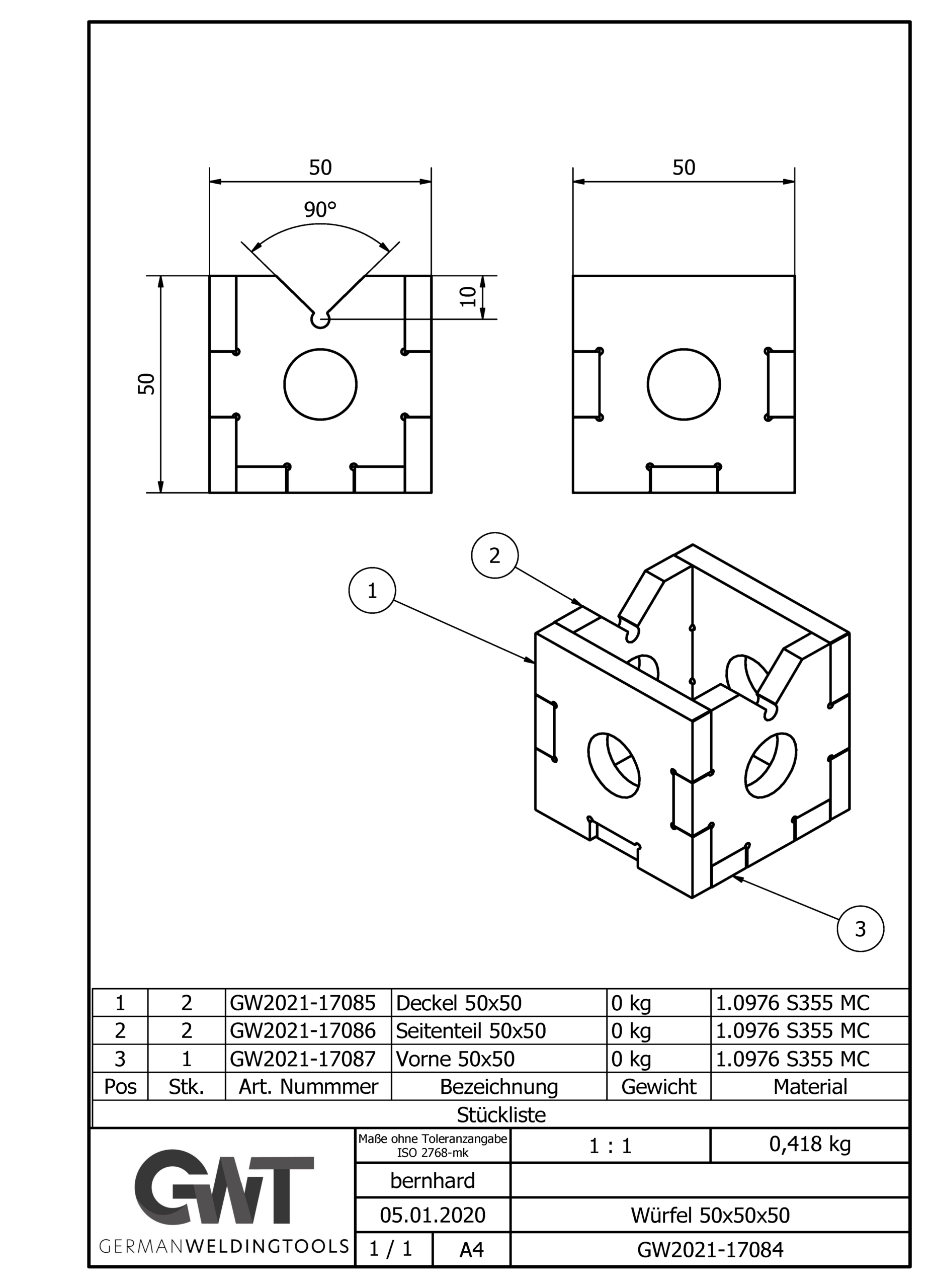 Lieferumfang enthält ein Bausatz-Set D16-6 Würfel 50x50x50.