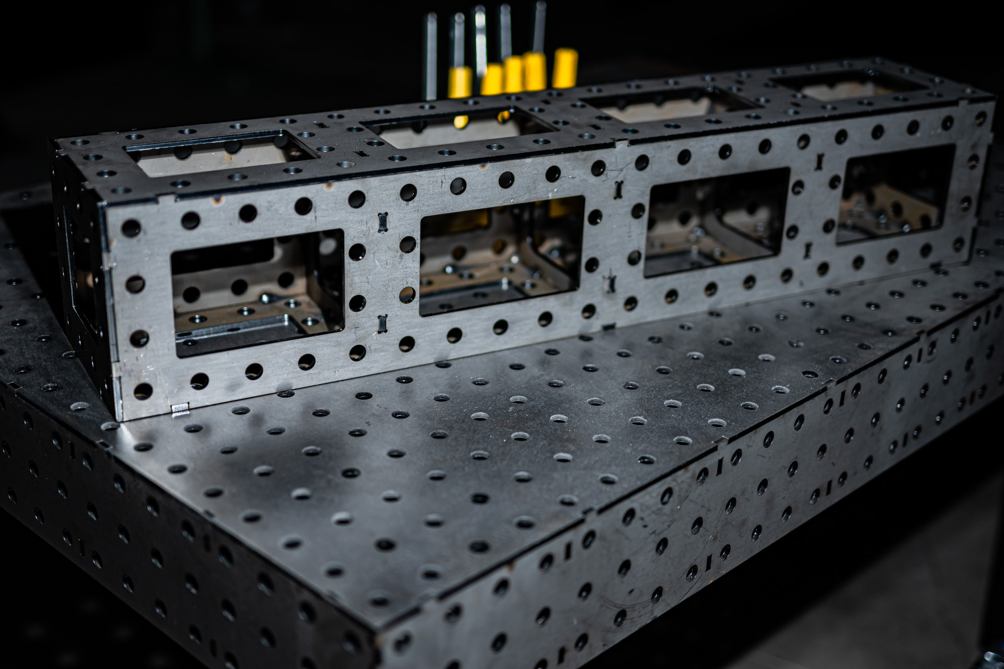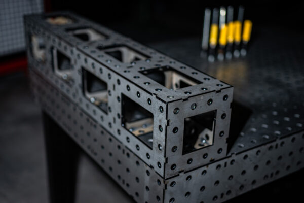 Der Würfel eignet sich ideal zur Verarbeitung von Profilbauteilen. Wenn Du dein Objekt positionieren willst, kannst Du ihn als „Unterbau” verwenden und dort zum Beispiel die Rohrmatrize aufspannen. Der Würfel gibt so Hilfestellung beim sauberen befestigen und bearbeiten von Profilen.
