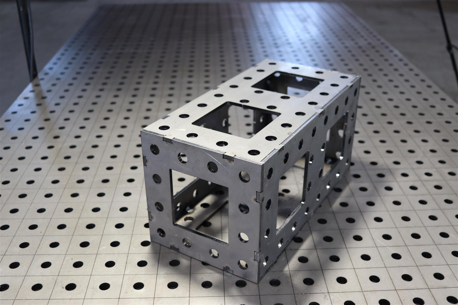 Der Würfel eignet sich ideal zur Verarbeitung von Profilbauteilen. Wenn Du dein Objekt positionieren willst, kannst Du ihn als „Unterbau” verwenden und dort zum Beispiel die Rohrmatrize aufspannen. Der Würfel gibt so Hilfestellung beim sauberen befestigen und bearbeiten von Profilen.