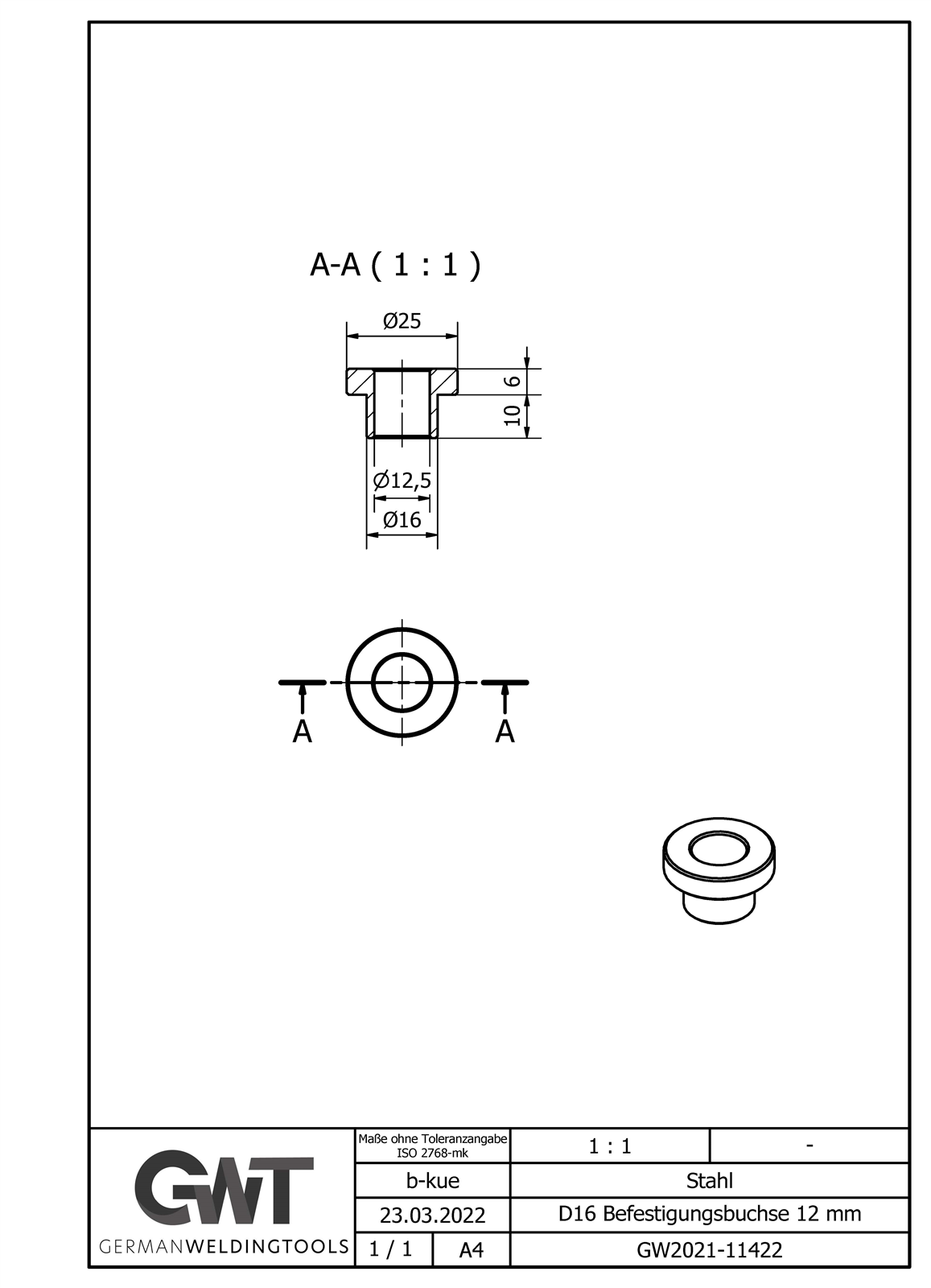 D16 Befestigungsbuchse 12 mm