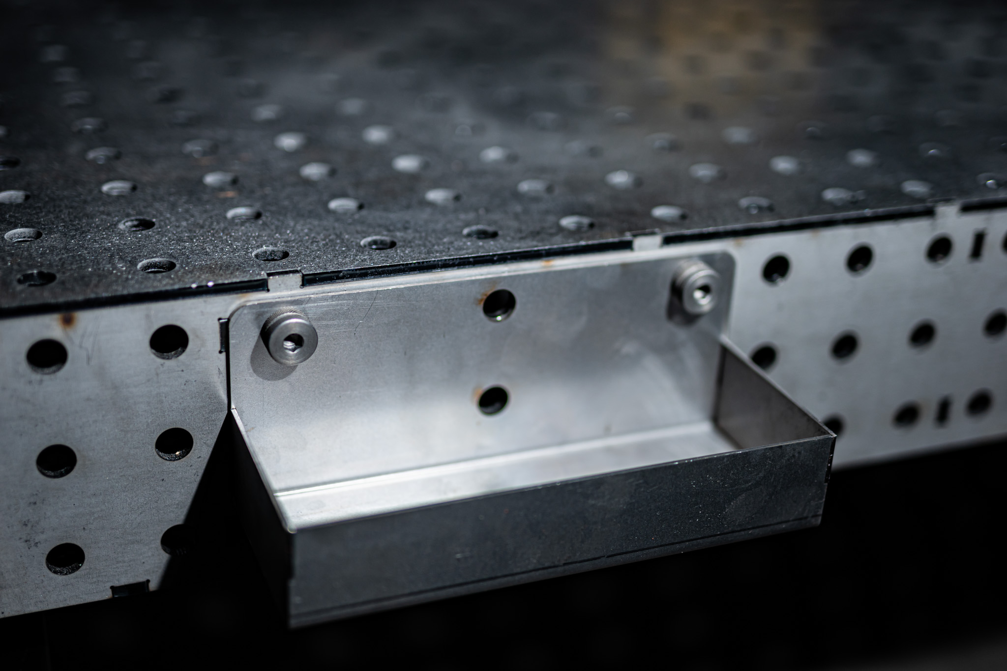 Dann Befestige die Kleinteilebox am Tisch oder am Fixen Tischebein mit den D16 Löchern. Alternativ kannst Du die Box auch an deinen Schweißwagen heften um Sprays oder Verbrauchsmaterial stets griffbereit aufzubewahren.