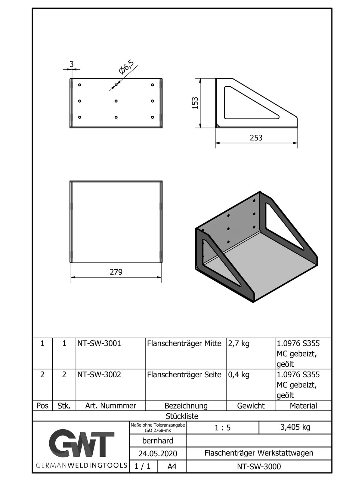 Die Besonderheit des Nasty Tools Flaschenträgers ist, dass man diesen entweder an einen Werkstattwagen oder an der Wand dauerhaft festschrauben kann. Der stabile Träger kann eine 10-20 Liter Flasche mit einem Durchmesser bis 210 mm stemmen. NT-SW-3000 Flaschenträger Werkstattwagen