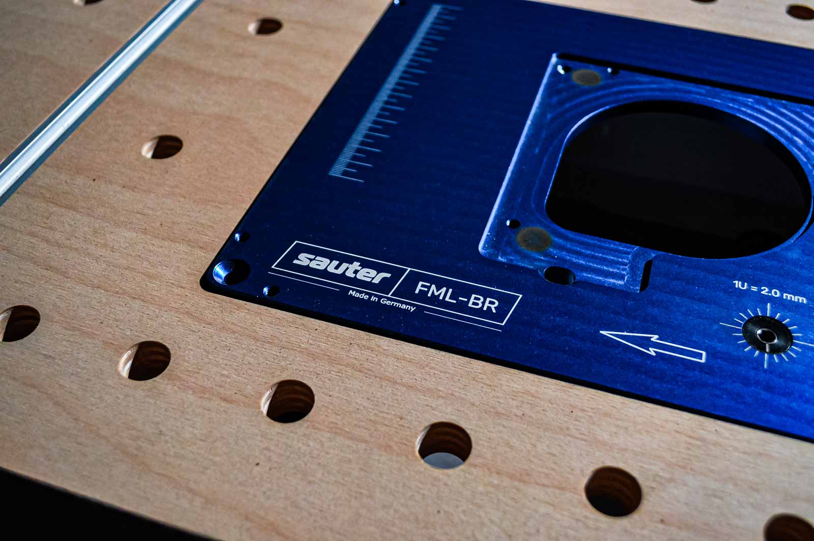 Imm Tisch ist ein Fräslift von Sauter plaziert. Links und rechts daneben befinden sisch C Profile als Führung