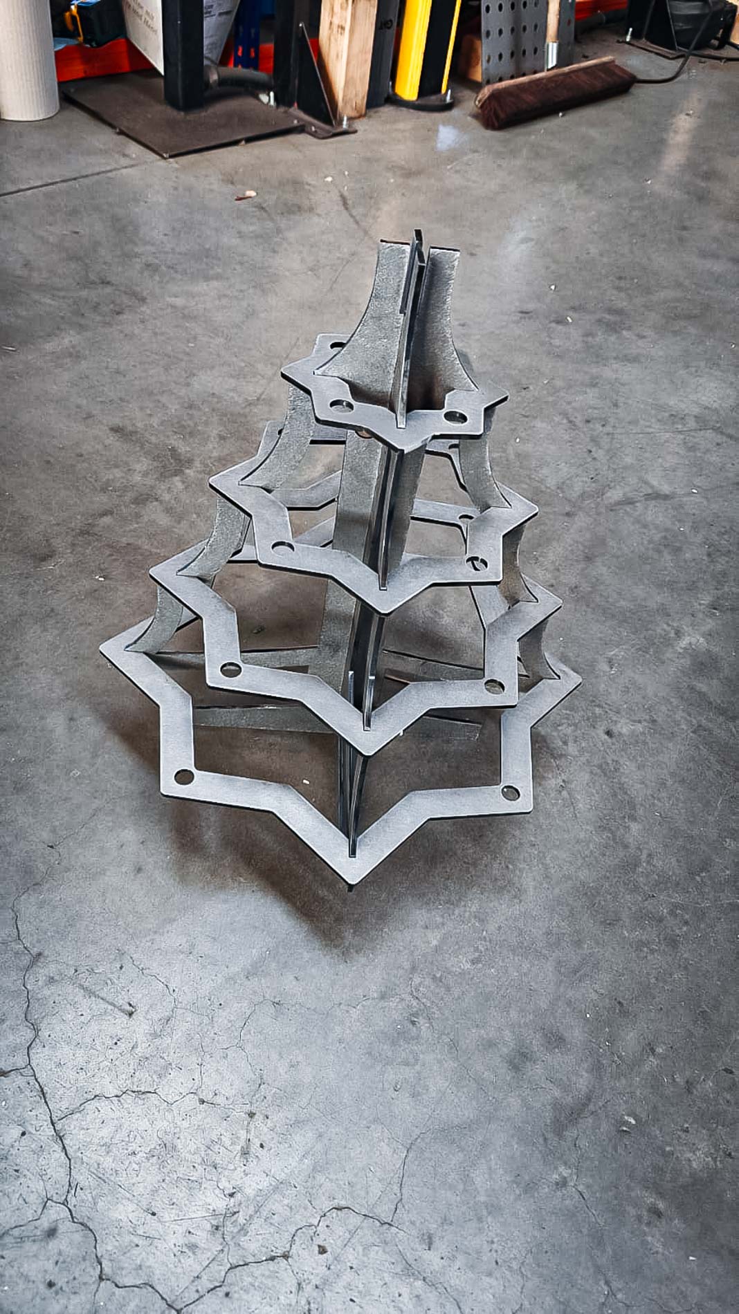 Wie im Video von Klotzki emfpohlen kann der Baum mit ein paar Schweißpunkten zusammen gehefetet werden. Der Stahltannenbaum ist einfach und schnell gebaut. Nutzt den GWT Bausatz, die Kemper Christbaumkugeln und eine Handvoll Zündkerzen und baut euch euren eigenen Tannenbaum.